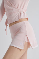 • Embroidered logo near slit and delicate lace trim for a feminine, ballet-inspired touch
