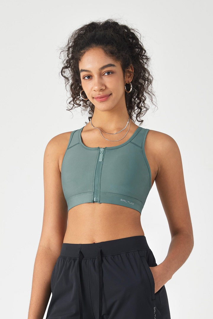HiTense™ Front Zip Sports Bra with High Support-Lt Teal